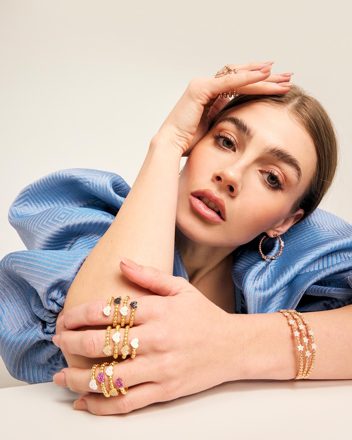 Ogni bracciale è un capolavoro di artigianato, realizzato con metalli pregiati e pietre scintillanti.